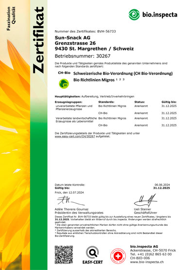 Les normes sont régulièrement contrôlées et certifiées par un organisme de contrôle accrédité. En tant qu’entreprise transformatrice de produits biologiques, nous répondons à toutes les exigences